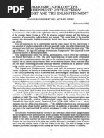 The document discusses the origins and history of Freemasonry in England. It argues that speculative Freemasonry, which emerged in the 17th century, was not directly descended from medieval stonemason guilds and did not inherit secret rituals or symbols from these guilds. Specifically, it points out that medieval English stonemasons did not have secret modes of recognition or esoteric knowledge, and there is no evidence of a direct causal link between them and later speculative Freemasons. The document aims to dispel the classical view that speculative Freemasonry preserves secrets and practices from medieval stonemasons.
