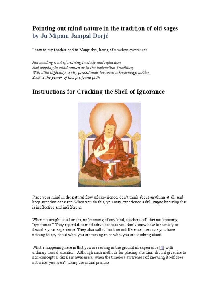 Pointing out mind nature in the tradition of old sages by Ju Mipam Jampal Dorj