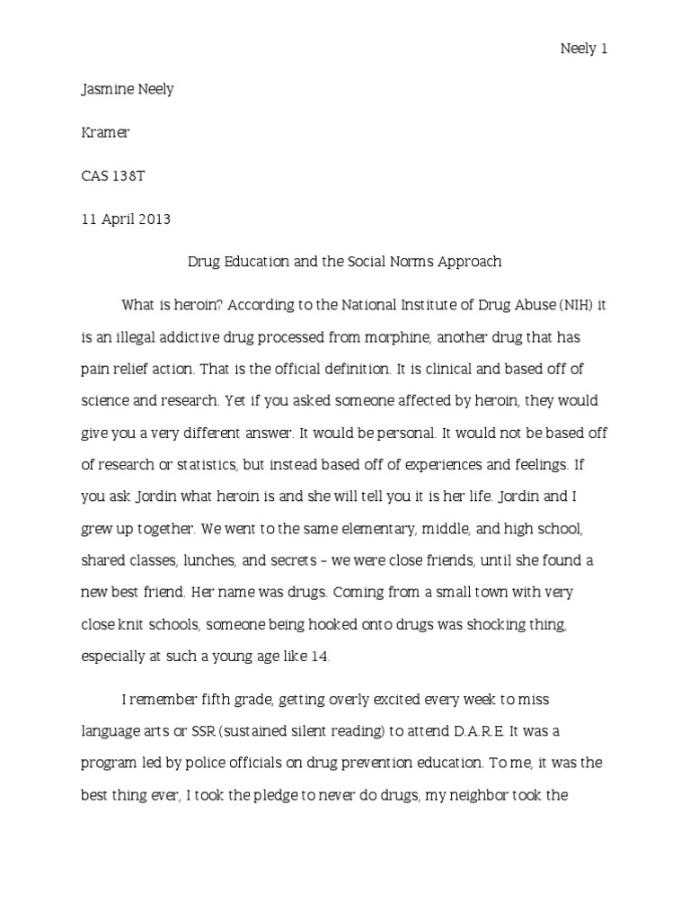 Neely 1 Jasmine Neely Kramer CAS 138T 11 April 2013 Drug Education and the Social Norms Approach