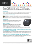 Printer Name ZM400 ZM600 Standard Features Print methods: Thermal transfer or direct thermal Construction: Die-cast aluminum base, frame and printhead mechanism Metal media cover with large clear window Element Energy Equalizer (E3) for superior print quality Auto-calibration Real-time clock Auto-ranging (90265 VAC) power supply Color-coded operator cues Multi-language control panel with back-lit 240 x 128 pixel display ZPL II XML-Enabled printingDirect-connect integration for barcode label printing that eliminates license fees and print server hardware, and lowers customization and programming costs Printer Specifications Resolution 203 dpi/8 dots per mm; 300 dpi/12 dots per mm; 600 dpi/24 dots per mm (ZM400 only) Memory Standard: 8 MB Flash, 16 MB DRAM Optional: Factory Installed 64 MB Flash Print Width ZM400: 4.09/104 mm ZM600: 6.6/168 mm Print Length ZM400: with 203 dpi 157/3,988 mm; with 300 dpi 73/1,854 mm; with 600 dpi 39/991 mm ZM600: with 203 dpi 102/2,590 mm; with 300 dpi 45/1,143 mm Print Speed 203 dpi: 10/254 mm per second 300 dpi: 8/203 mm per second 600 dpi: 4/102 mm per second Media Sensors Fixed reflective sensor Adjustable transmissive sensor media characteristics Maximum Label and Liner Length Maximum non-continuous: 39/991 mm Maximum Label and Liner Width ZM400: 4.5/114 mm ZM600: 7.0/178 mm Maximum Roll Diameter: 8.0/203 mm Core Diameter: 3.0/76 mm Media Thickness: 0.0023/0.058 mm to 0.010/.25 mm Media Types Continuous, die-cut, tags, black-mark Ribbon Characteristics Outside Diameter: 3.2/81.3 mm Standard Length: 984/300 m or 1476/450 m Ratio 3:1 media roll to ribbon Ribbon must be at least as wide as media Width ZM400: 2.00/51 mm to 4.33/110 mm ZM600: 2.00/51 mm to 6.85/174 mm Ribbon setup Ribbon wound ink-side out (ribbon wound ink-side in can be used with optional ribbon spindle on ZM400) Core I.D. 1.0/25.4 mm Operating Characteristics Environmental Operating temperature: 32 F/0 C to to 104 F/40 C (Direct Thermal) 40 F/5 C to 104 F/40 C (Thermal Transfer) Storage temperature: -40 F/-40 C to 140 F/60 C Operating humidity: 20-85% non-condensing Storage humidity: 5-85% non-condensing Electrical Universal auto-ranging (PFC-compliant) power supply 90-265 VAC; 48-62Hz Agency Approvals IEC 60950-1, EN55022 Class B, EN55024, EN61000-3-2,3 Markings: cULus, CE Marking, FCC-B, ICES003, VCCI, C-Tick, NOM, CCC, GOST-R, BMSI, S-Mark, MIC, ZIK Physical Characteristics ZM400 ZM600 Width: 10.9/278 mm 13.4/341 mm Height: 13.3/338 mm 13.3/338 mm Depth: 18.7/475 mm 18.7/475 mm Weight: 32.4 lbs/15 kg 34.7 lbs/16 kg Shipping Weight: 49 lbs/22 kg 54 lbs/24.5 kg ZebraLink Solutions Software ZebraDesigner Pro ZebraDesigner for XML ZebraNet Bridge Enterprise ZebraNet Utilities v 7.0 Zebra Universal Driver ZBI-Developer Additional scalable and bitmapped fonts available Networking/Connectivity ZebraNet Wireless Plus Print Server ZebraNet 10/100 Print Server RS-232C serial port High-speed, IEEE1284, bi-directional parallel interface USB 2.0 Print Server Firmware ZPL II EPL XML-Enabled Printing APL-I/APL-D (Contact Zebra Development Services for additional details) Web View Alert ZBI 2.0 Fonts/Graphics/Symbologies Fonts and Character Sets 7 bitmapped, 1 smooth scalable Native open type font support Global PrintingUnicode compliant for fast multilanguage, on demand thermal printing right out of the box. Contains UFST from Monotype Imaging Inc. Graphic Features Supports user-defined fonts and graphics including custom logos ZPL II drawing commandsfor boxes and lines Barcode Symbologies Linear Barcodes: Code 11, Code16k, Code 39, Code 93, Code 128 with subsets A/B/C and UCC Case C Codes, UPC-A, UPC-E, EAN-8, EAN-13, UPC and EAN 2 or 5 digit extensions, Plessey, Postnet, Standard 2-of-5, Industrial 2-of-5, Interleaved 2-of-5, Logmars, MSI, Codabar, Planet Code 2-Dimensional: Codablock, PDF417, Code 49, Data Matrix, MaxiCode, QR Code, MicroPDF417, TLC 39, GS1 DataBar (RSS), Aztec Options and Accessories Factory installed 64 MB Flash memory option Cutter with catch tray Peela front mount, passive peel option with no liner take-up Liner take-up (works with peel option)full roll liner take-up spindle (fits standard base, ZM400 only) Rewindinternally rewinds full label roll on 3 core (comes with taller, non-standard printer base) RS-422/485 serial port adapter Optional ribbon spindle to support ribbon wound ink-side in (ZM400 only) Supplies For optimal printing quality and proper printer performance across our product line, Zebra strongly recommends the use of genuine Zebra supplies as part of the total solution.