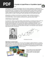 Arnold publishers Ltd. London (1970) 11. Franklin D. Saeva Liquid crystals The fourth state of matter 12. Peter J. Collings Introduction to Liquid Crystal Chemistry and Physics