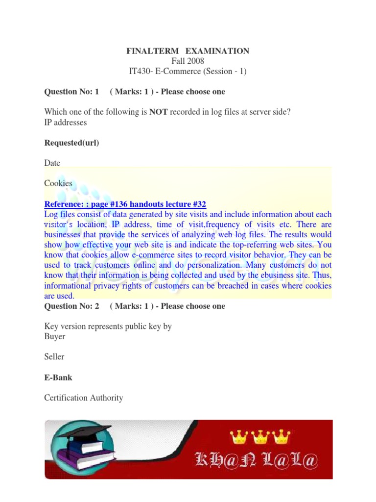 Question No: 2 ( Marks: 1 ) - Please choose one
