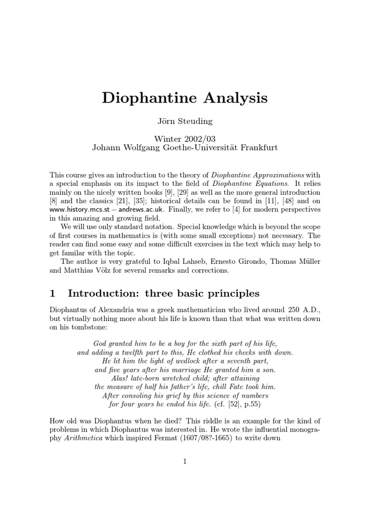 problems in which Diophantus was interested in. He wrote the inuential monogra-