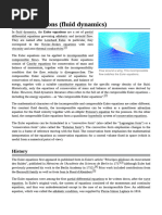September 2008 For his whole life Euler was interested in fluids and fluid mechanics, especially their applications to shipbuilding and navigation. He first wrote on fluid mechanics in his Paris Prize essay of 1727, [E4], Meditationes super problemate nautico, de implantatione malorum , (Thoughts about a navigational problem on the placement of masts), an essay that earned the young Euler an acessit, roughly an honorable mention, from the Paris Academy. Euler's last book, Thorie complete de la construction et de la manoeuvre des vaisseaux, (Complete theory of the construction and maneuvering of ships) [E426], published in 1773, also dealt with practical applications of fluid mechanics. We could summarize Euler's contribution to the subject by saying that he extended the principles described by Archimedes in On floating bodies from statics to dynamics, using calculus and partial differential equations. Indeed, he made some of the first practical applications of partial differential equations. Euler's work is very well known among people who study fluid mechanics. Several of the fundamental equations that describe non-turbulent fluid flow are known simply as "the Euler equations," and the problem of extending those equations to turbulent flow, the Navier-Stokes equations, is one of the great unsolved problems of our age. This month, we are going to look at [E258], Principia motus fluidorum, (Principles of the motion of fluids), in which Euler derives the partial differential equations that describe two of the basic properties of fluids: 1. 2. the differential equations for the continuity of incompressible fluids, and the dynamical equations for ideal incompressible fluids.