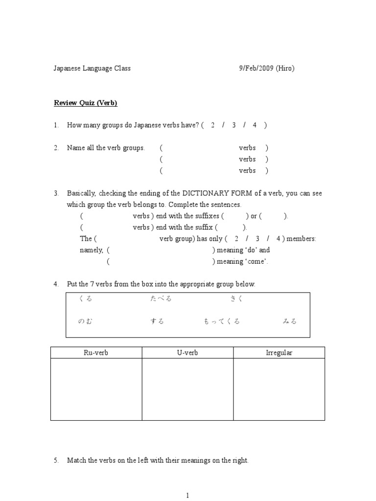 1. How many groups do Japanese verbs have? ( 2 / 3 / 4 )