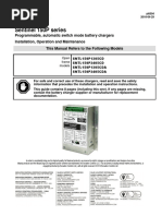 Data logging: Daily statistics:................ Minimum, maximum and average on input channels, with date and time stamp Battery current, rectifier current, and AC mains voltage for last 90 days Event log:......................... On all events such as alarms, power on, any change of state of the digital inputs, or other miscellaneous events Battery log:...................... Battery health history on last 20 discharges, time of discharge, and battery capacity Control functions:............ Automatic, scheduled (periodic) or manual equalize Automatically terminated equalize charge Battery current terminate equalize Dynamic charge current control Battery capacity and runtime prediction Auto or manual battery test DC Output Panel:............... 2 x 2 Pole, 32A breakers (10KAIC) with alarm monitoring AC Input (not a service entrance): Single phase:...................1 x 2-pole 10KAIC (30KAIC option) Three phase:...................1 x 3-pole delta connection 10KAIC 1 x 3-pole wye connection 10KAIC
