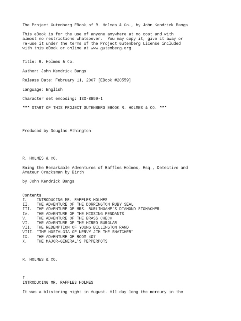 End of the Project Gutenberg EBook of R. Holmes & Co., by John Kendrick Bangs