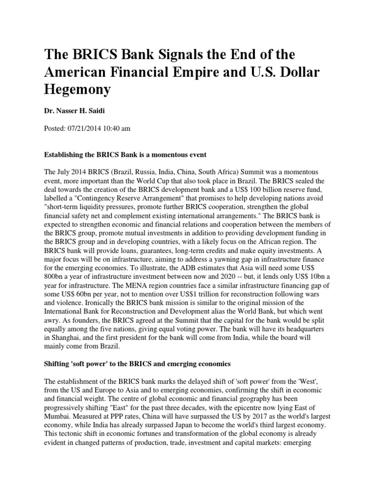 The BRICS Bank Signals the End of the