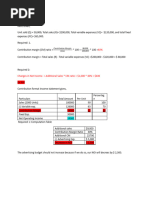 (a) Determine the contribution margin in dollars, per unit, and as a ratio.