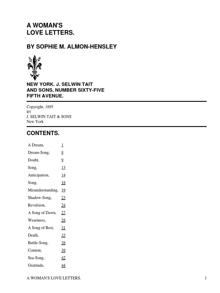 The Project Gutenberg eBook of A Woman's Love Letters, by Sophie M. Almon-Hensley