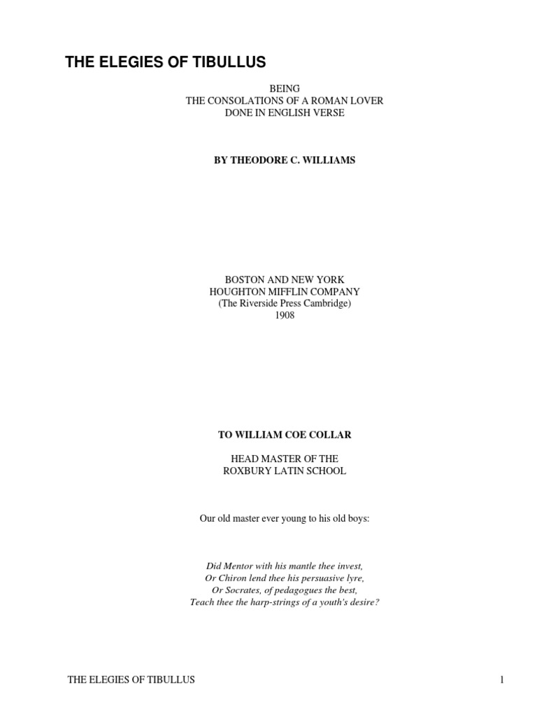 The Project Gutenberg eBook of The Elegies of Tibullus, By Theodore C. Williams.