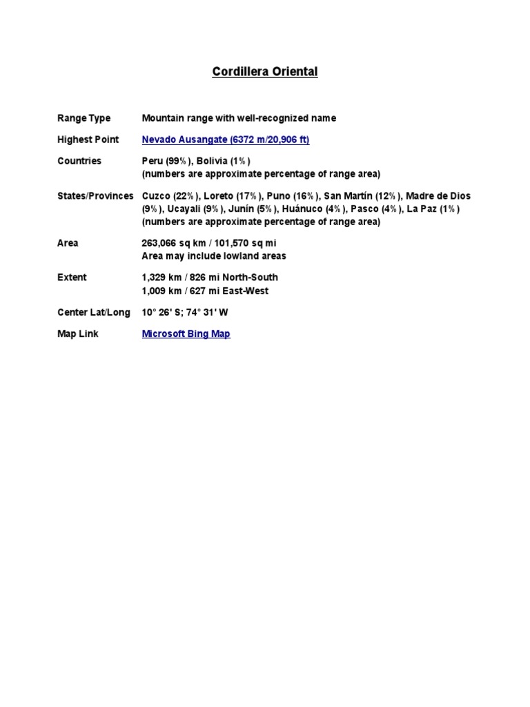 CORDILLERA ORIENTAL