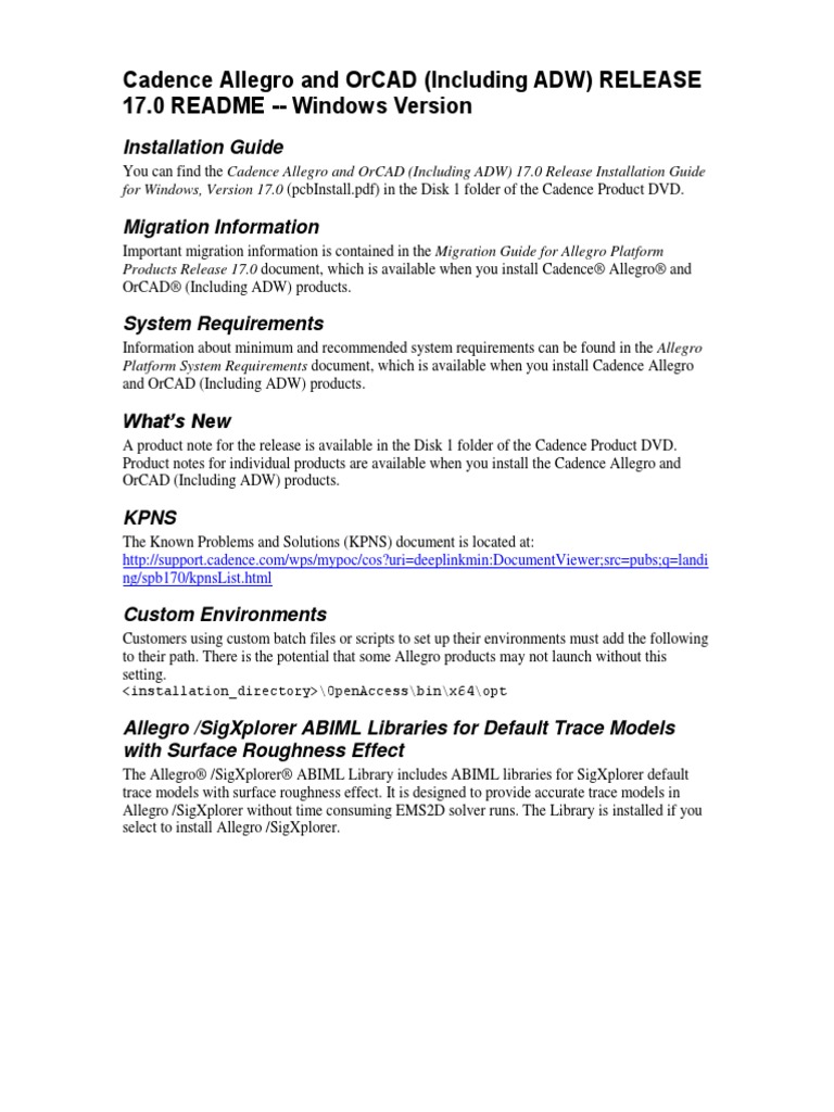 Products Release 17.0 document, which is available when you install Cadence Allegro and