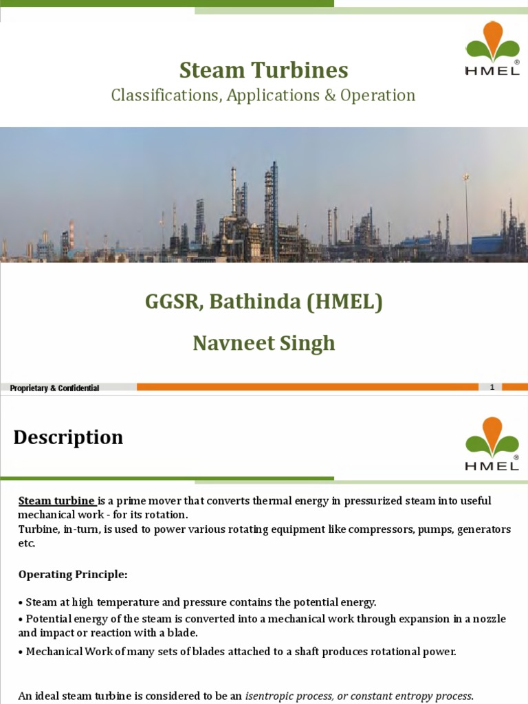 Steam turbine is a prime mover that converts thermal energy in pressurized steam into useful