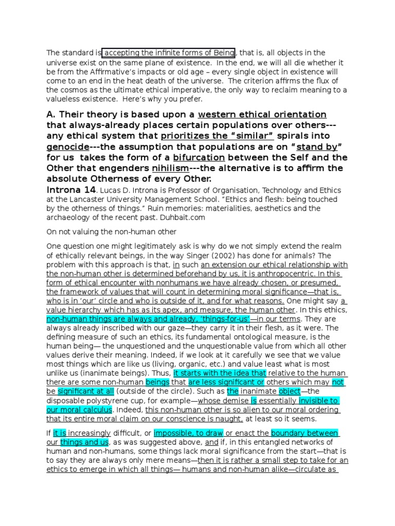 any centre whatsoever. We need an ethics of things that is radically beyond the selfidentical of human beings. Such an ethics beyond metaphysics need as its ground,