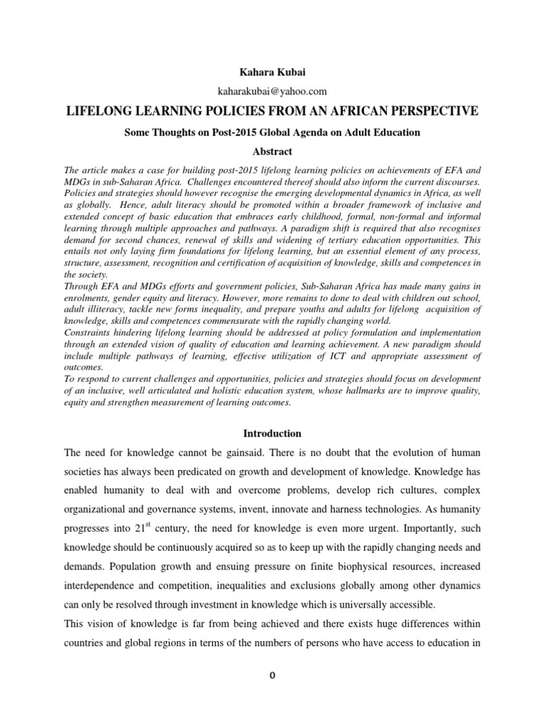 adult education within the framework of lifelong learning drawing from an African perspective.