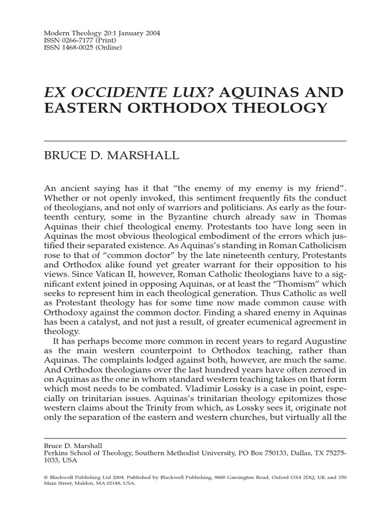 of Aquinas now shared by Orthodox theologians and their friends in the