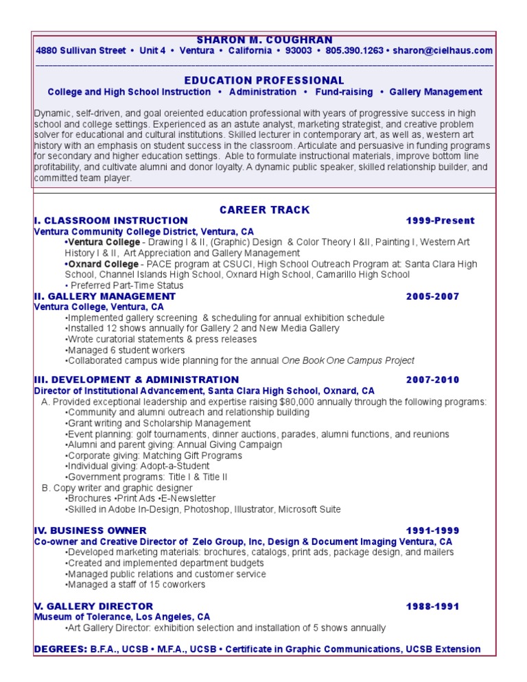 College and High School Instruction • Administration • Fund-raising • Gallery Management