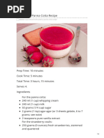 The document is a recipe for an almond and lime panna cotta dessert from Poh's Kitchen. It includes a list of ingredients and instructions for making the panna cotta and lychee cream topping. Viewers asked questions in the comments about unavailable ingredients and how to make vegetarian substitutions.