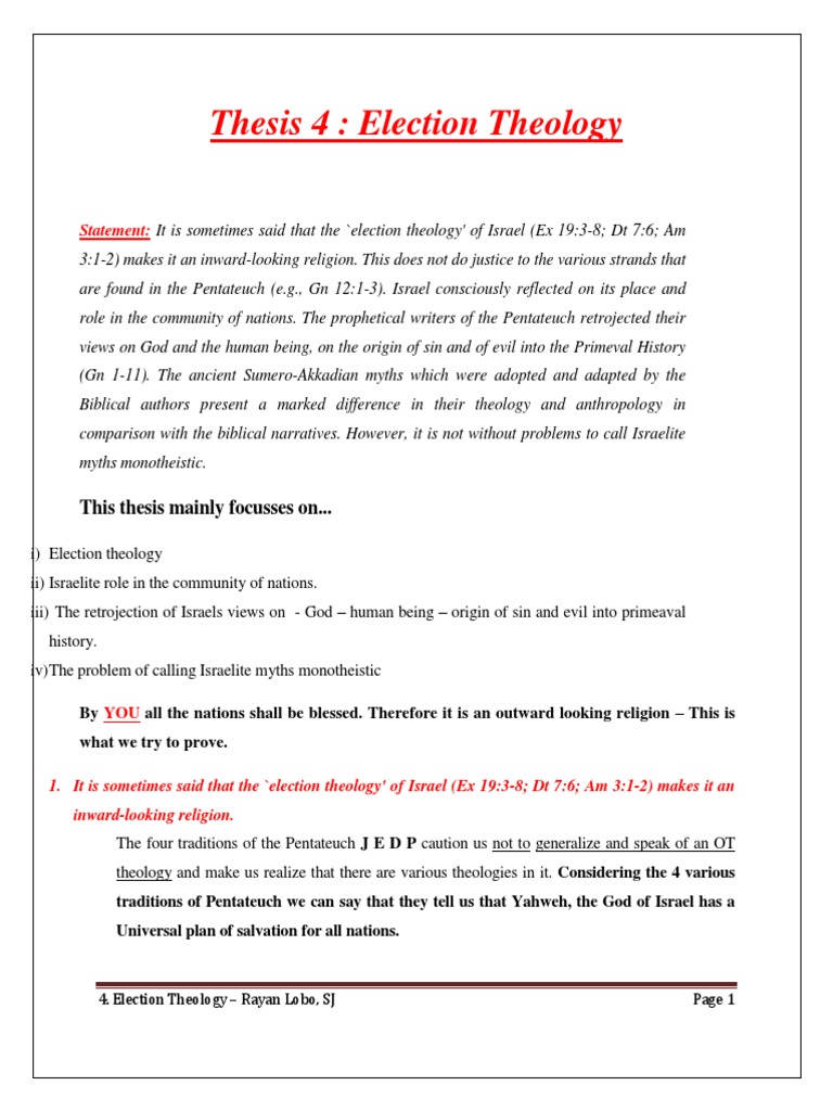 Statement: It is sometimes said that the `election theology' of Israel (Ex 19:3-8; Dt 7:6; Am