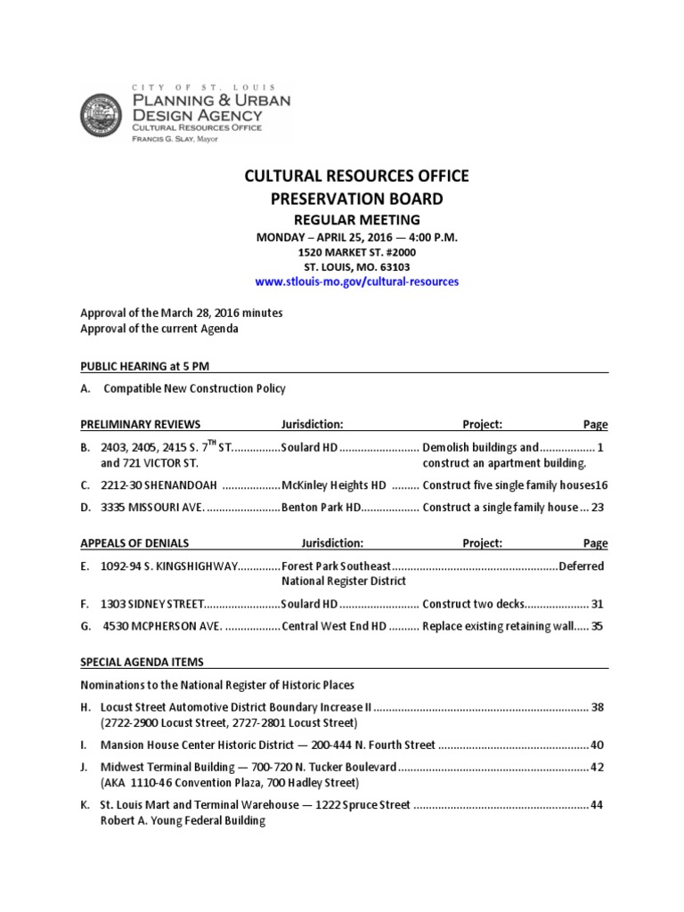 St. Louis City Preservation Review Board - Final Agenda 04/25/2016