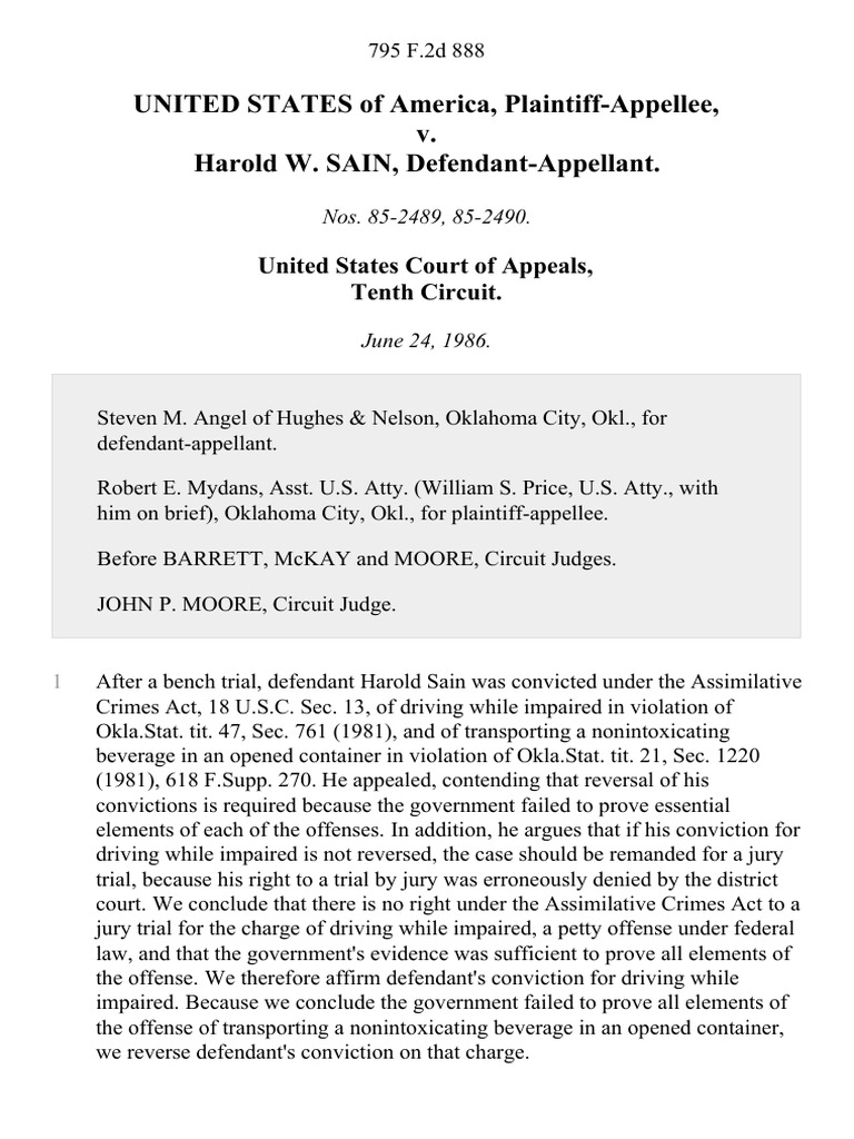 United States v. Harold W. Sain, 795 F.2d 888, 10th Cir. (1986)