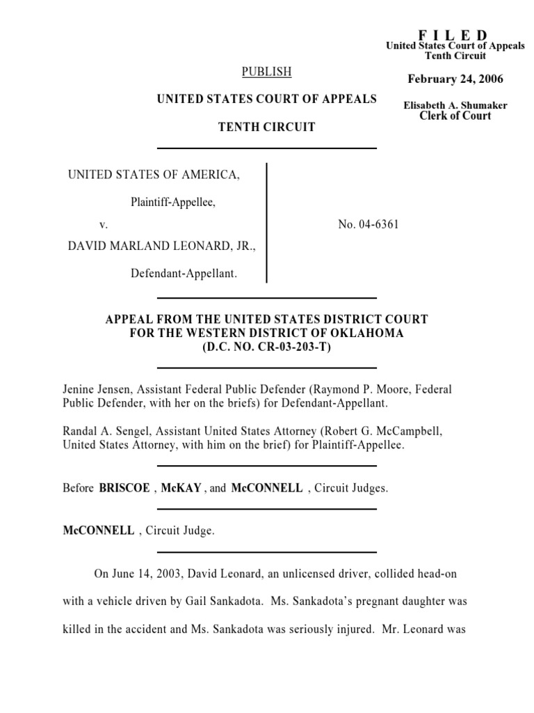 and 113(a)(6), respectively. A jury convicted Mr. Leonard on two counts of the
