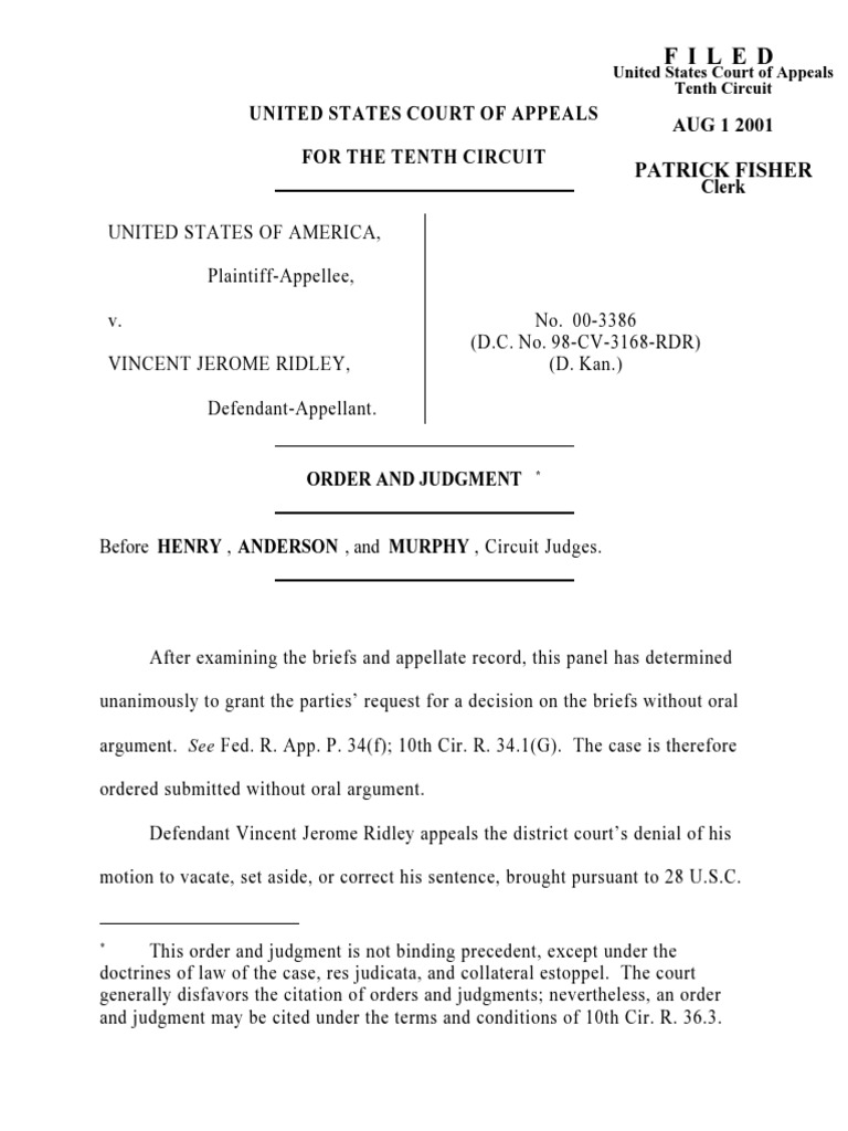 Defendant Vincent Jerome Ridley appeals the district courts denial of his