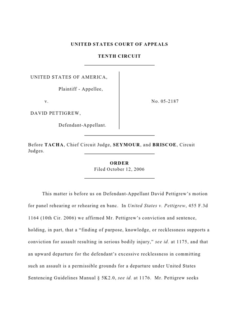 1164 (10th Cir. 2006) we affirmed M r. Pettigrews conviction and sentence,