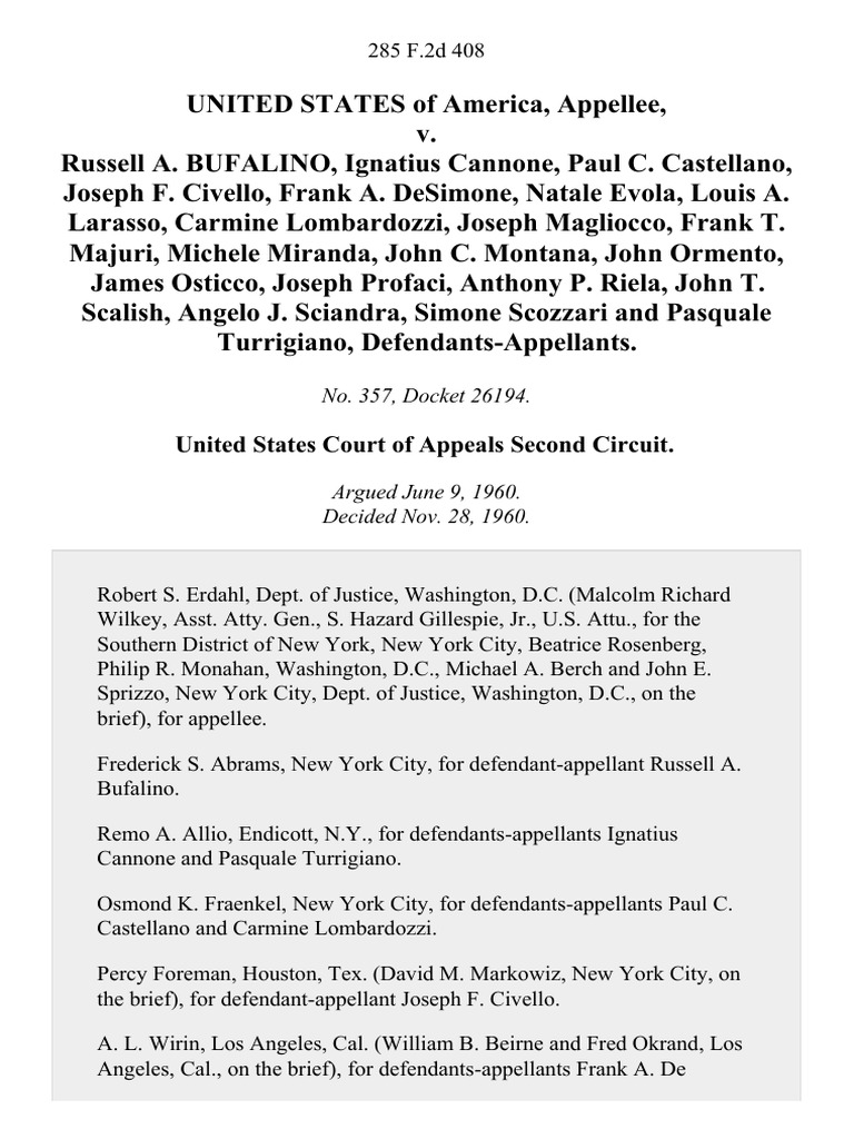 with the Apalachin gathering. Evola and Sciandra had been subpoenaed and