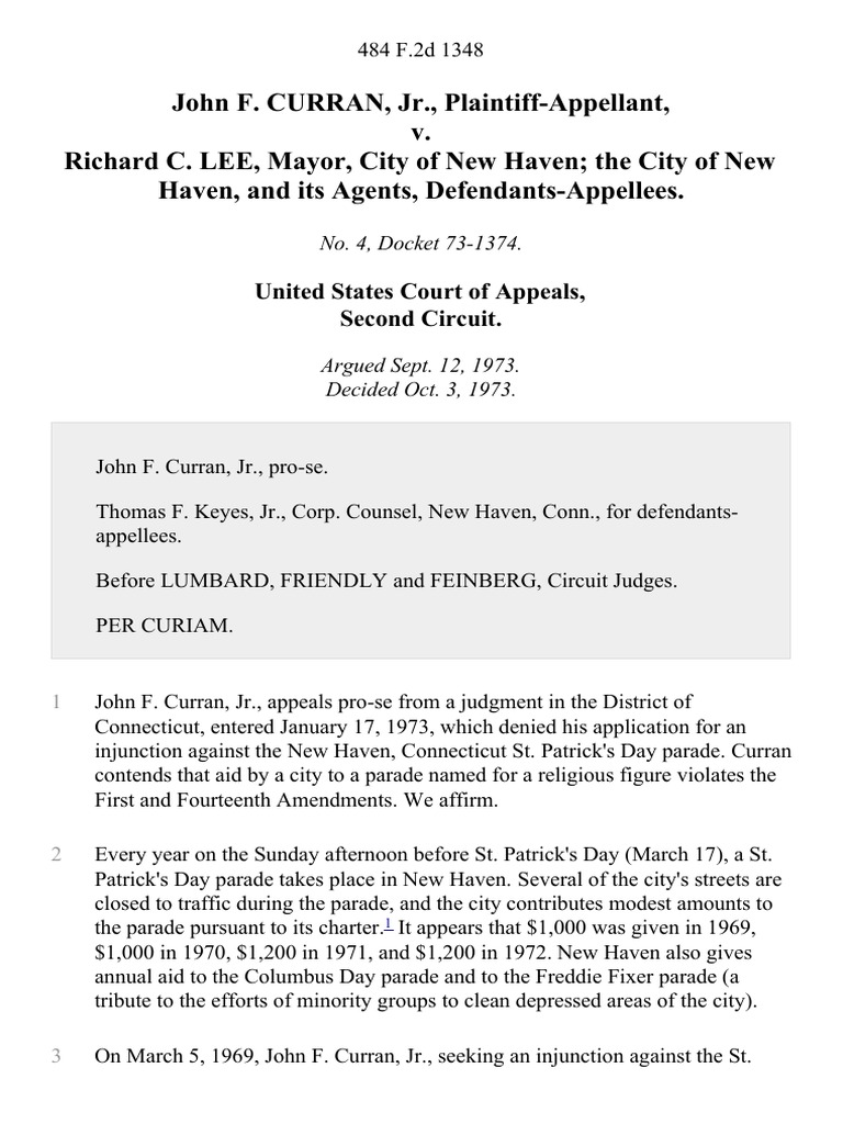 injunction against the New Haven, Connecticut St. Patrick's Day parade. Curran