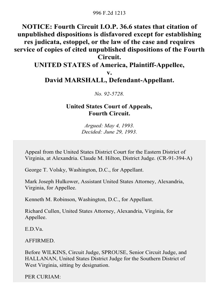 United States v. David Marshall, 996 F.2d 1213, 4th Cir. (1993)