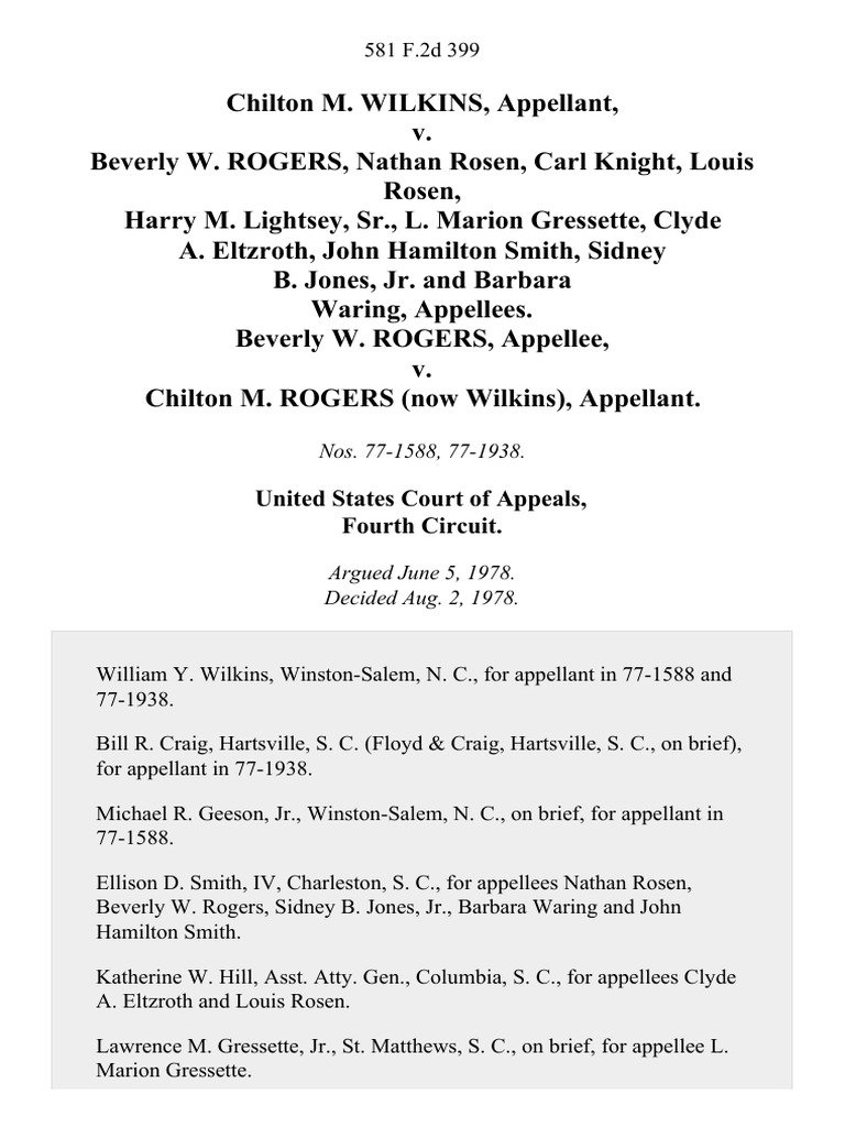 Rogers. Wilkins alleges that Rogers, three members of the South Carolina