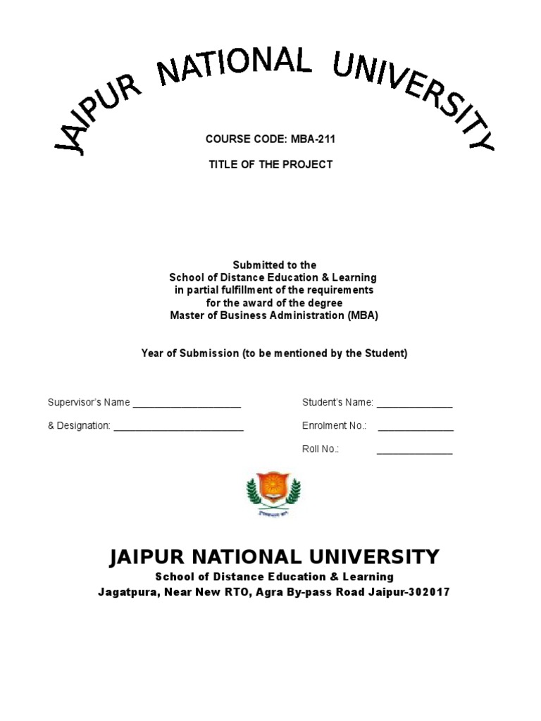 submitted to Jaipur National University, Jaipur in partial fulfillment of the requirement for the award of