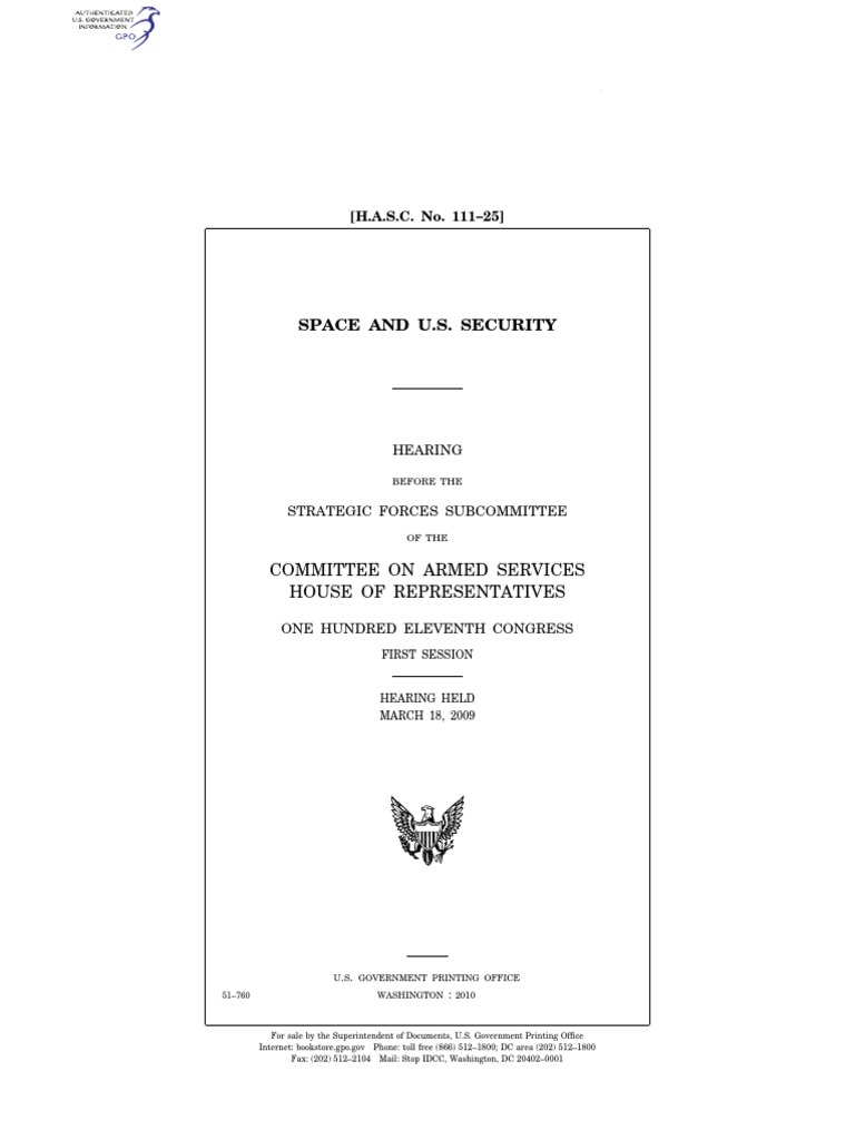 HOUSE HEARING, 111TH CONGRESS - (H.A.S.C. No. 111-25) SPACE AND U.S. SECURITY