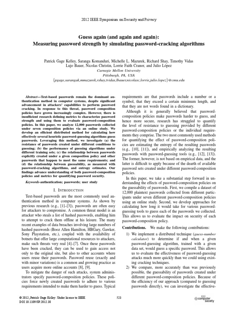 Guess Again (And Again and Again) : Measuring Password Strength by Simulating Password-Cracking Algorithms