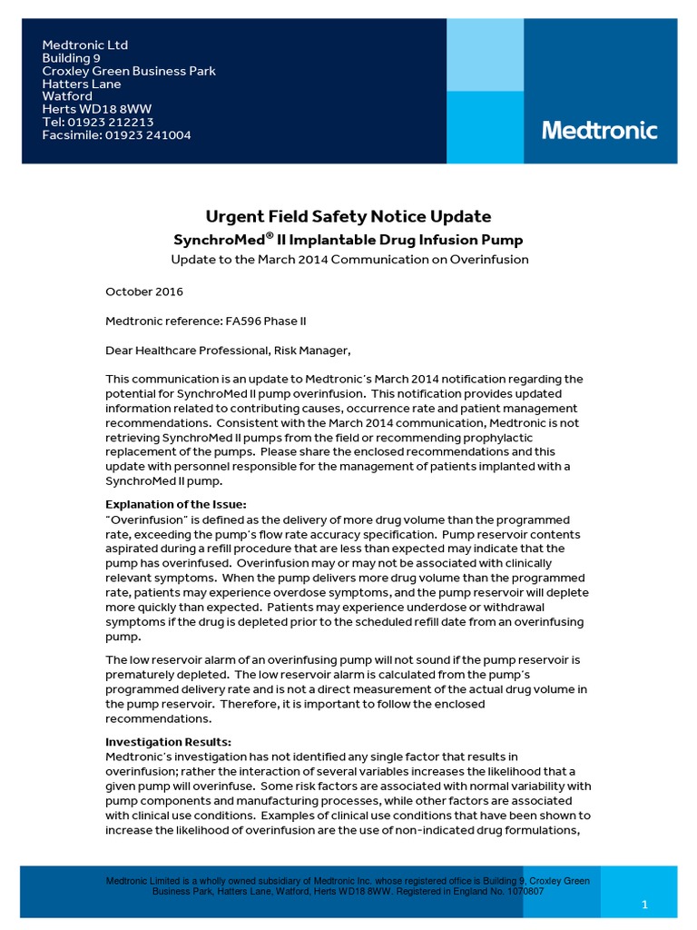 potential for SynchroMed II pump overinfusion. This notification provides updated