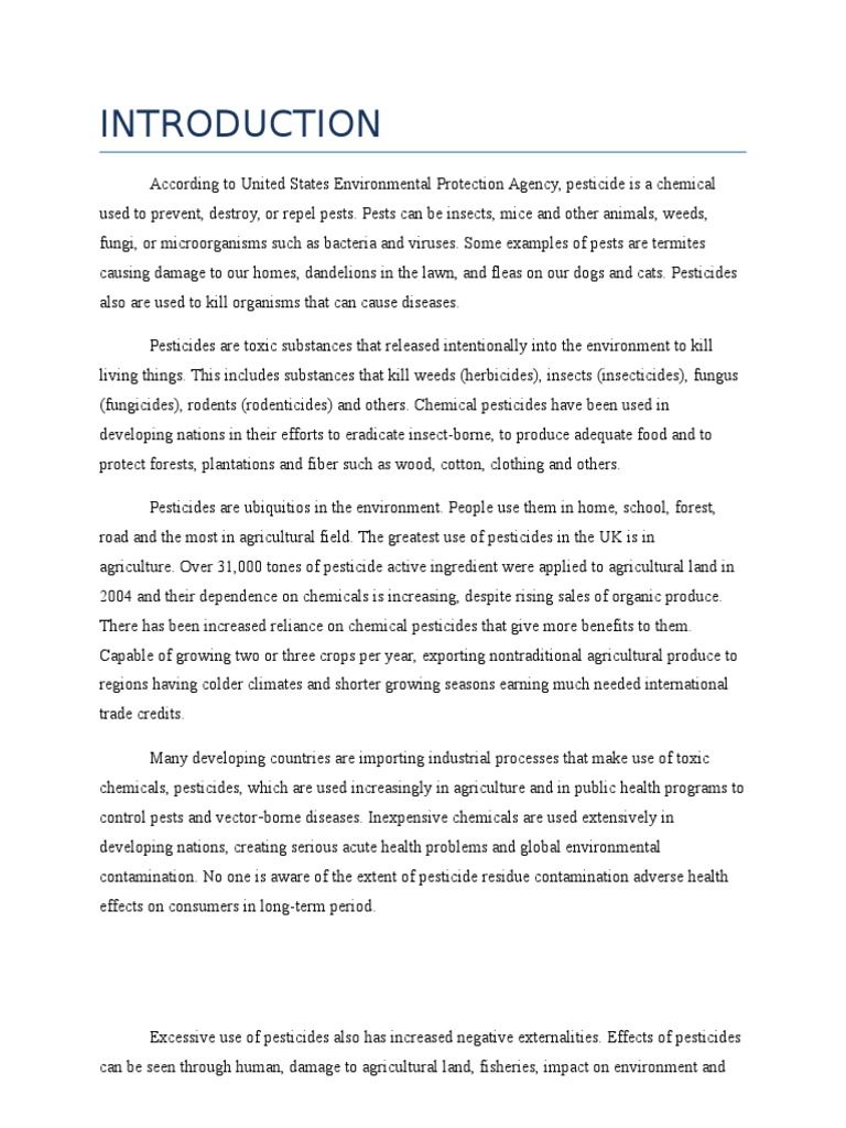 contamination. No one is aware of the extent of pesticide residue contamination adverse health