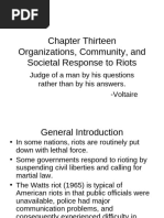 Randall Collins examines the micro and macro sociological causes of violence and atrocities using the 1863 New York City draft riots as an example. The riots were sparked by resentment of Irish immigrants towards conscription efforts during the Civil War, as well as longstanding tensions between Irish Catholics and Anglo-Protestant elites over political and economic issues. Over several days, rioters attacked symbols of Anglo power but were generally defeated by police and military forces. However, rioters found success targeting vulnerable groups like African Americans, attacking and killing isolated black citizens in ritualistic displays of cruelty. Collins analyzes how the dynamics and emotions of crowds can escalate violence and prolong attacks in places where they feel dominant.