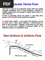 The document describes calibrating a standing wave flume to determine its coefficient of discharge. A standing wave flume is constructed by adding a hump to a venturi flume, allowing discharge to be measured based on upstream depth readings. Experiments are conducted by measuring the depth and collecting discharge from the flume over time. Results are analyzed to calculate actual discharge, velocity, specific energy, theoretical discharge based on equations, and the coefficient of discharge.