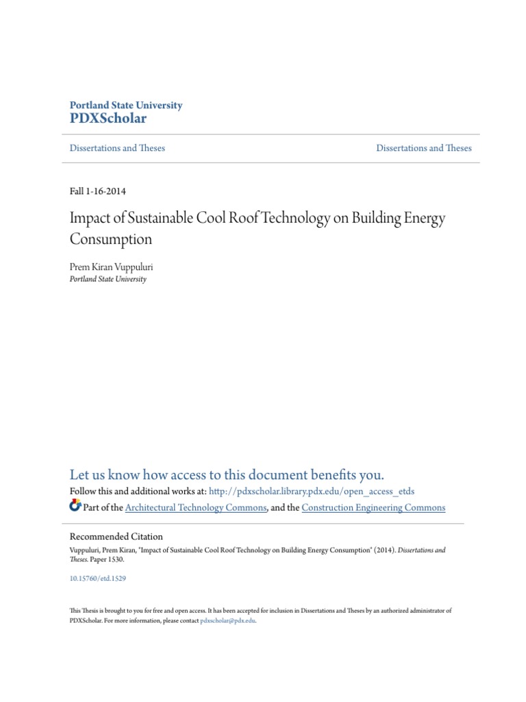 Vuppuluri, Prem Kiran, "Impact of Sustainable Cool Roof Technology on Building Energy Consumption" (2014). Dissertations and
