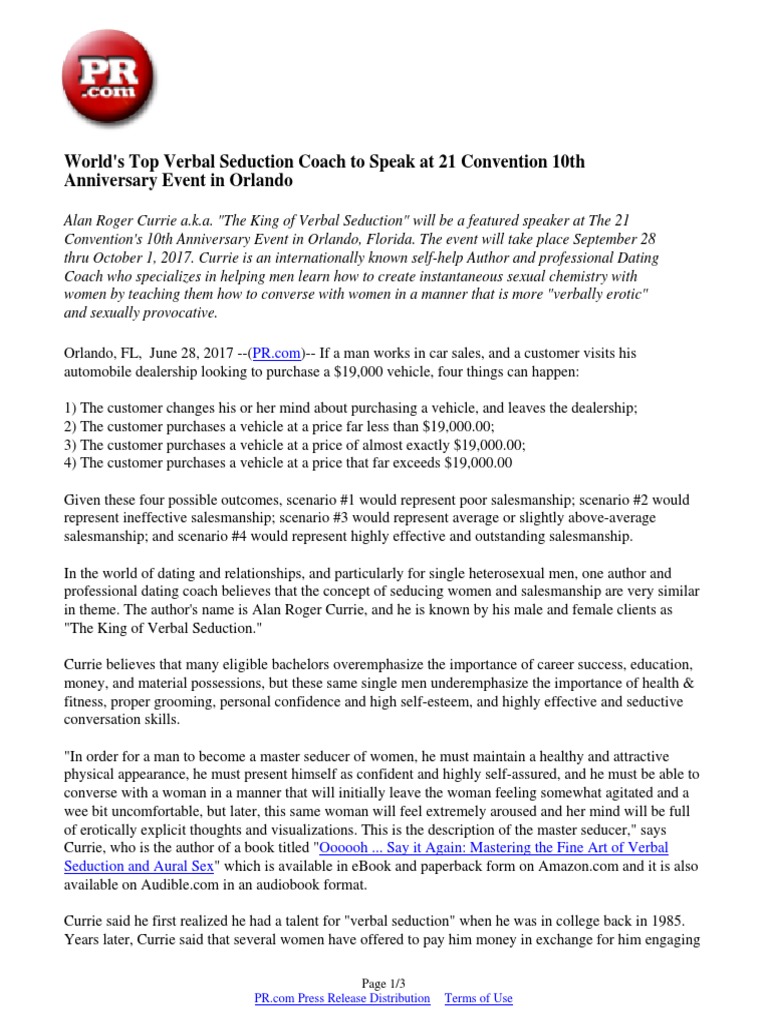 Alan Roger Currie a.k.a. "The King of Verbal Seduction" will be a featured speaker at The 21