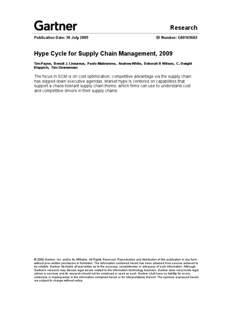 Figure 1. Hype Cycle for Supply Chain Management, 2009 ............................................................. 8
