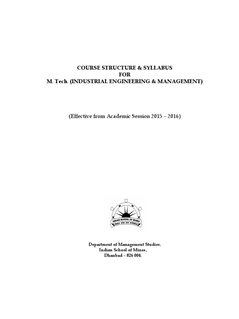 M. Tech. (INDUSTRIAL ENGINEERING & MANAGEMENT)