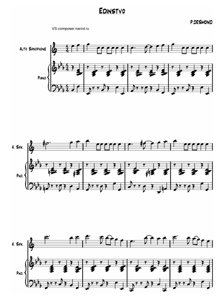 Paul Desmond - Edinstvo (Saxophone Alto & Piano) PDF