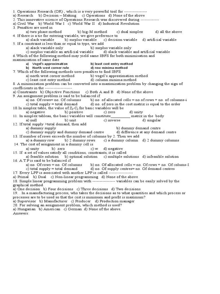 1. Operations Research (OR) is a powerful tool for decision-making. 2. OR was discovered during World War II to help with strategic and logistical problems. 3. Several linear programming solution methods, including the two-phase method and big-M method, use penalties to find initial basic feasible solutions.
