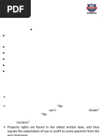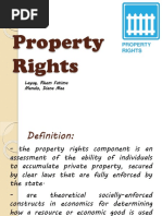 This document discusses property rights in economics. It defines property rights and the different types of property rights regimes including open access, public, common, and private property. It also discusses how property rights relate to the environment, natural resources, and economic development as well as their role in theories of the firm.