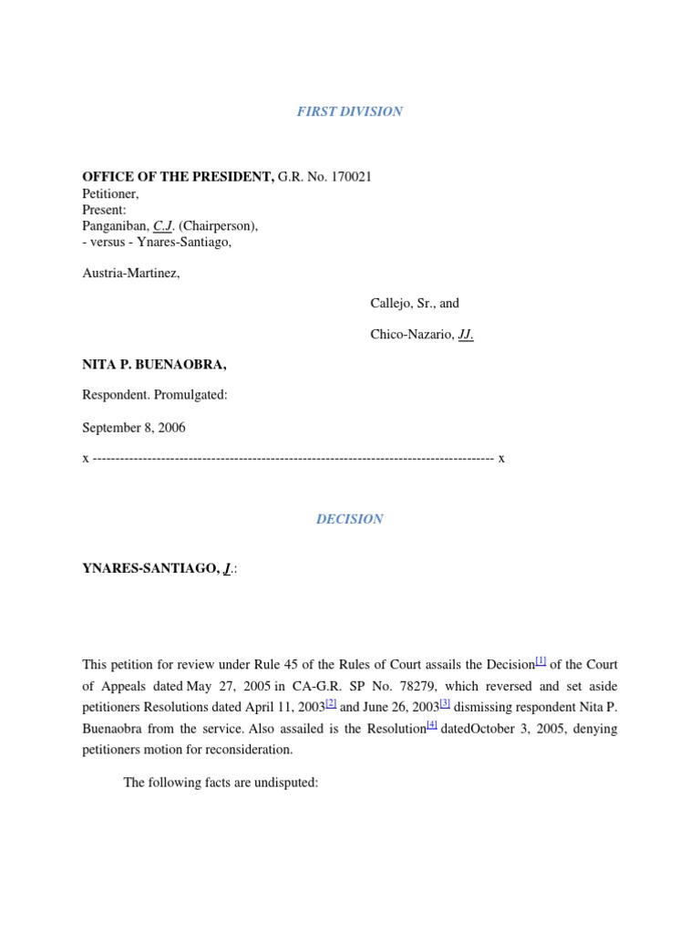 respondent Nita P. Buenaobra from the service, and its Resolution dated October 3, 2005