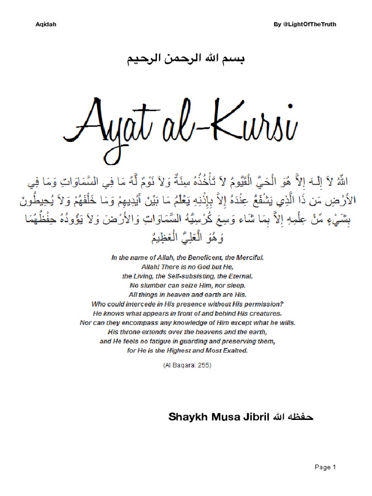 PDF Ayat Al-Kursi - Shaykh Musa Jibril