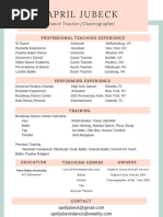 Proficient in instructing or choreographing modern, ballet, jazz, hip hop, tap,